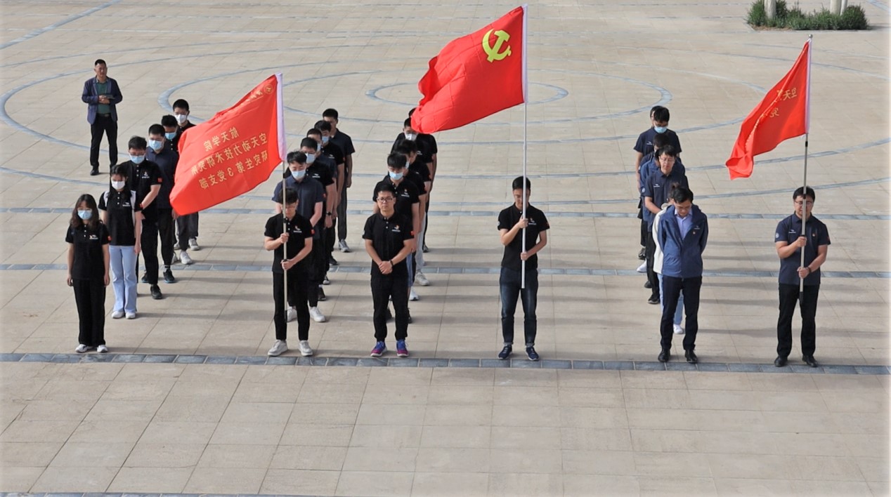 在当地疫情防控政策允许下,全体成员于上午9点来到烈士陵园,园内庄严肃穆又生机勃勃,在人民烈士纪念碑前开始活动。活动伊始,由教师党员代表和学生党员代表共同向先烈敬献花篮。随后,全体师生向纪念碑默哀、鞠躬致敬,表达对革命烈士的敬意。