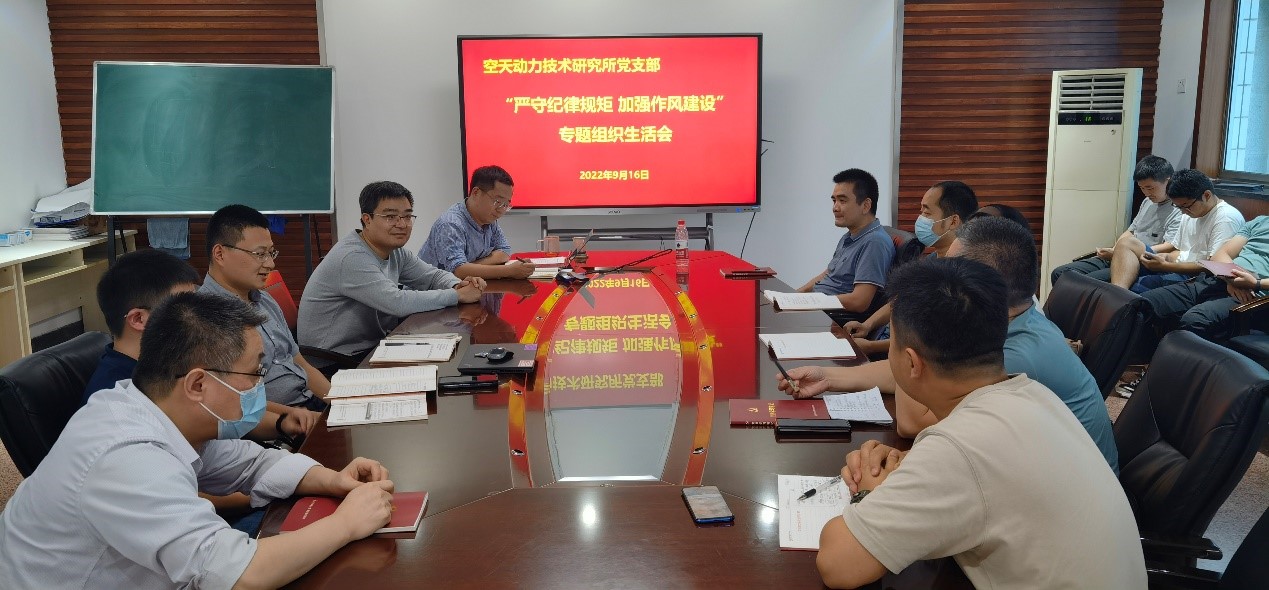 2022年9月16日,球王会体育官方网空天动力技术研究所党支部召开“严守纪律规矩 加强作风建设”专题组织生活会。会议由党支部书记吕翔同志主持,支部联系人球王会体育官方网宁昕副院长参会。