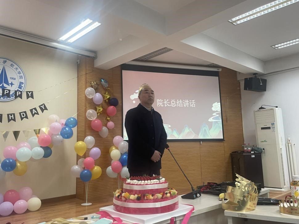 最后,岳晓奎总结发言。他表示,作为过生日的教师,感谢学院党委和学院办公室工作人员对筹办此次集体生日会所付出的努力,也感谢广大教职工长期以来在人才培养、科学研究、队伍建设、合作交流等方面为学院发展做出的贡献。学院将进一步为教职工营造出良好的工作氛围,创造沟通交流的机会,打造出干事创业的空间和平台。他指出,在学校的大力支持下,学院将持续发力,下大力气抓好师资队伍建设,强化青年教师队伍引育工作,下大功夫为教职工创造出凝心聚力,团结奋进的干事创业氛围。学院将对标世界一流球王会体育官方网的建设目标,瞄准国家重大战略需求和科技前沿,培养出更多具有战略思维和国际视野的航天领域人才,不断提升学院核心竞争力。希望大家继续关心和支持学院工作,共同为学校“双一流”建设和学院高质量发展做出贡献。