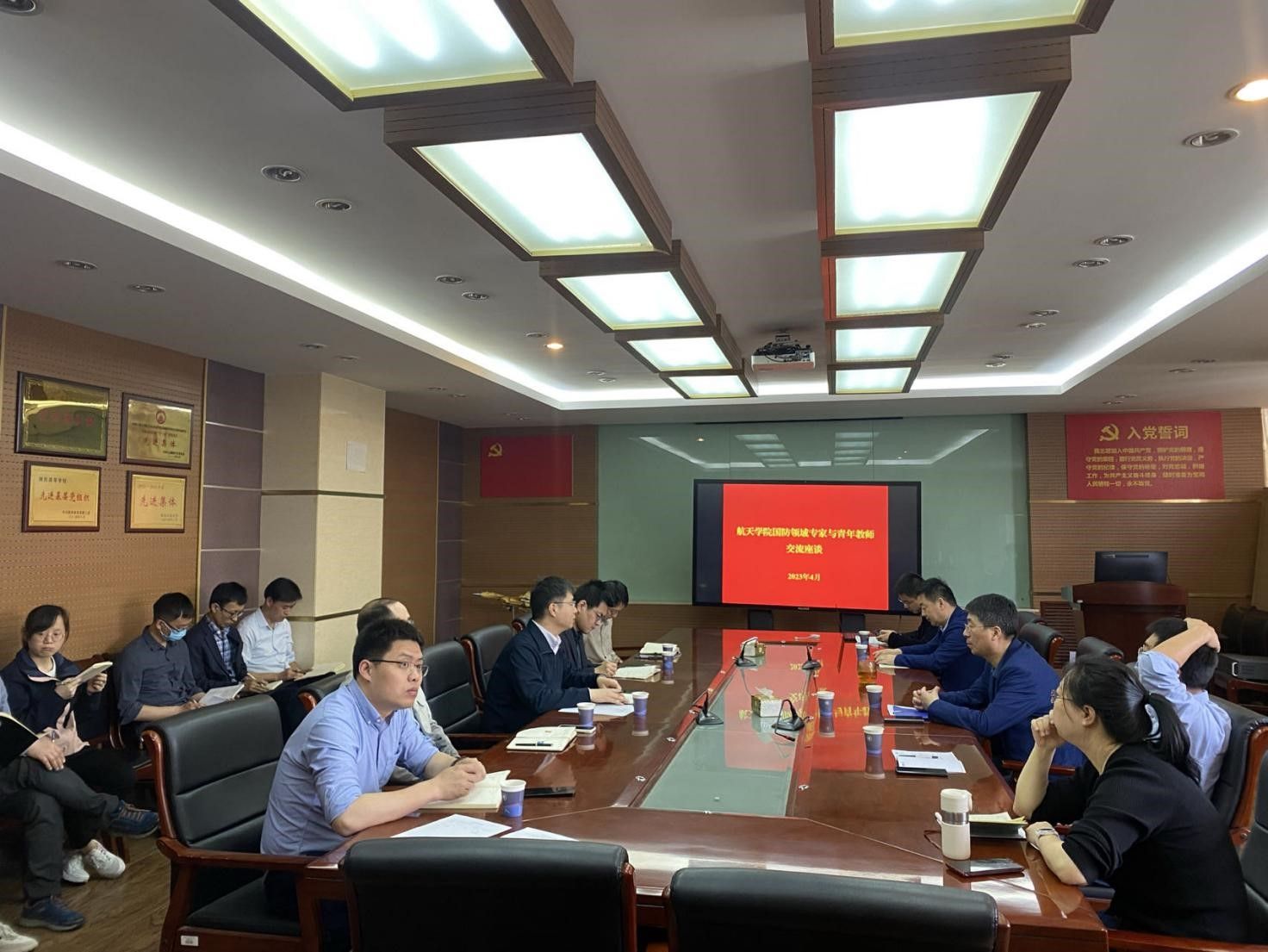 为促进青年教师人才培养,贯彻落实“着力争取重大科研项目,担当国家使命任务”的工作要求,2023年4月18日上午,球王会体育官方网召开国防领域专家与青年教师交流座谈会。会议特邀国防领域专家黄攀峰教授、闫晓东教授、袁源教授、凡永华研究员、某基金项目负责人孙瑾秋教授、张庆华教授和学院各研究所青年教师20余人共同参加,会议由院长助理李少毅主持。