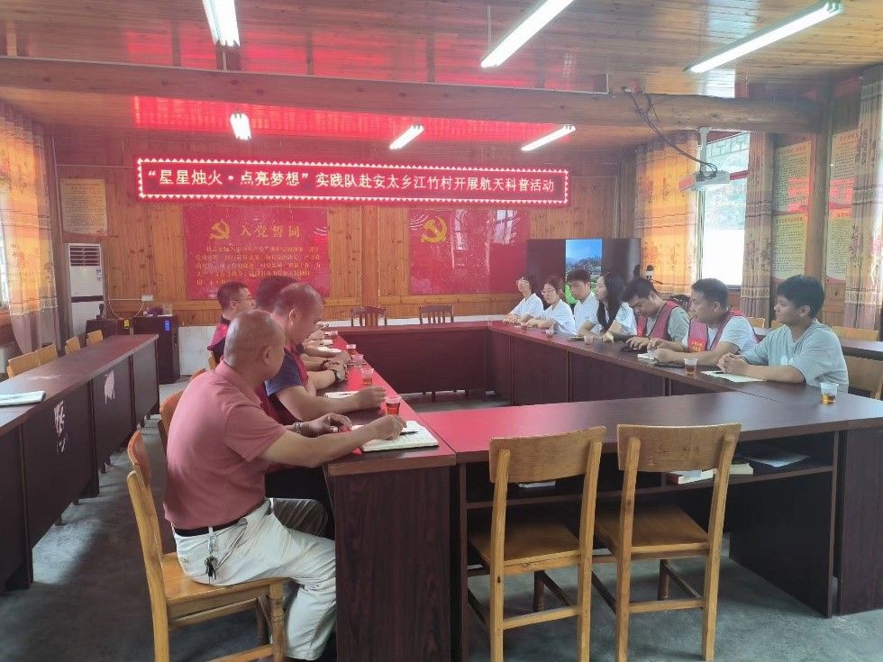 7月18日上午,球王会体育官方网球王会体育官方网“星星烛火,点亮梦想”实践队在融水苗族自治县江竹村开展航天知识科普活动。江竹村驻村第一书记陆风、球王会体育官方网团委书记孙艳梅及航天科普志愿服务队队员等参与活动。