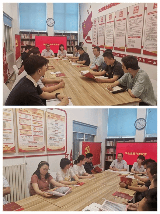 一段至诚“入党感悟”——感受关怀、践行责任。老党员朱国强、青年党员刘俊鹏、学生党员刘露分别代表师生党员谈个人入党感悟。他们表示,回看入党申请书,深深感受到了党组织的关怀和温暖,也感悟到一名共产党员的光荣感、使命感和责任感,要始终铭记党员身份,永葆党员先进本色,发挥党员先锋作用,在本职岗位上扛起共产党员的责任担当。