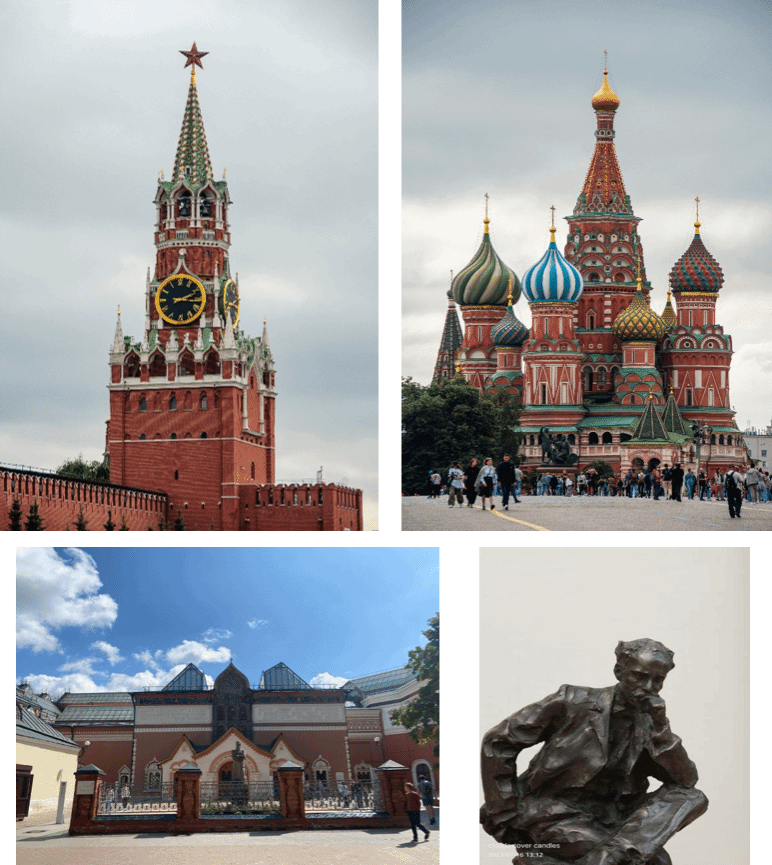 对俄罗斯的印象是以红场参观游览之行开始具象化的。7月16日,暑期学校团队一行人,便来到久负盛名的莫斯科红场,红场——古俄语意为“美丽的广场”,是俄罗斯最具代表性地标之一,也是俄罗斯举行各种活动的重要场所。克里姆林宫为红场主要建筑之一,坐落于红场西侧。沿莫斯科河,欣赏着美丽的风景,一路来到俄罗斯全国规模最大地艺术博物馆——特列季亚科夫画廊,画廊里收藏了许多世界名家的作品,如列宾、罗丹、达芬奇的作品等,欣赏这些作品使学生们更好地了解和感受俄罗斯艺术的内涵和魅力。