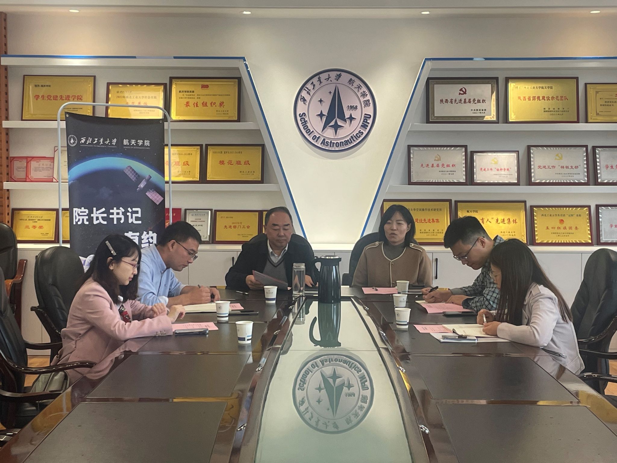 10月19日,球王会体育官方网第三期“书记院长有约”活动在学院413会议室举行。本次活动主题是“飞天翱翔·共谋发展”,与青年教师面对面。执行院长岳晓奎、党委书记黄越、青年教师代表刘星、朱明珠、张烨、荣俊杰参加了本次活动。活动由党委书记黄越主持。