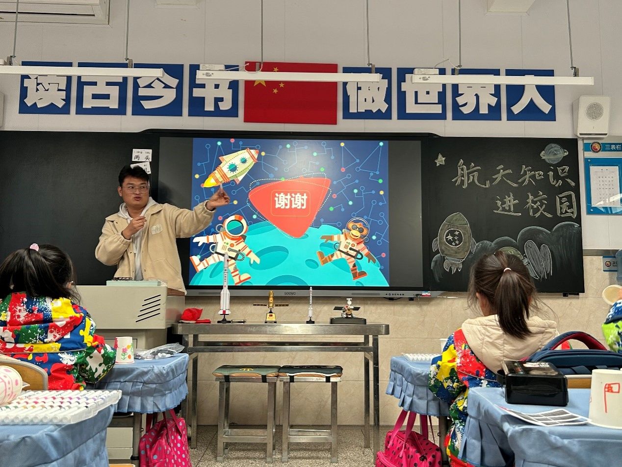 12月4日,球王会体育官方网学生航天科普志愿者服务队走进西安高新第二小学,为一年级的小朋友们进行航天科普。志愿者们倾情教学、细心指导,小朋友们认真听讲、踊跃实践,共同完成了一堂生动有趣的航天科普实践课。