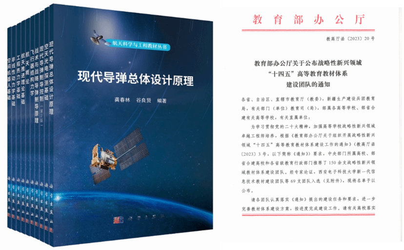 人才培养方面,我们踔厉创新,以“总师育人文化”引领航天科技总师型人才培养改革。2023年《空气动力学计算方法》课程获批国家级一流本科课程;获评高等教育国家级教学成果奖二等奖1项;获第四届全国高等学校航空航天类专业本科毕业设计成果特等奖3项、二等奖4项;岳晓奎教授牵头组建的航空航天智能飞行器系列教材建设团队成功入选战略性新兴领域“十四五”高等教育教材体系建设团队名单;统筹规划出版《航天科技“总师型”人才培养系列丛书》共52部,提升航宇A+学科影响力,并向其他高校推广;获批陕西省学位与研究生教育研究项目重点项目等省部级本、硕教改项目4项;获陕西省第七届研究生创新成果展高质量成果1项;获教育部学位与研究生教育发展中心主题案例1项;入选陕西省优秀博士论文1人;入选中国宇航学会高水平硕士学位论文激励计划1人。