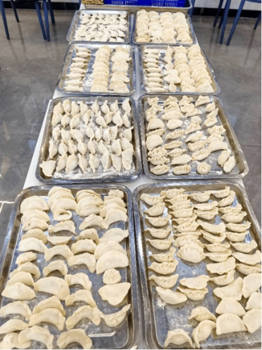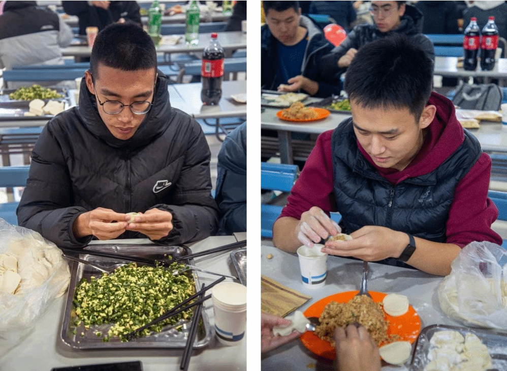 活动伊始,各位同学已跃跃欲试,纷纷展示起自己对包饺子的独到见解,五花八门的饺子不一会儿便出现在各位同学手边,即使是初学者也在一步步尝试中窥探到一些门路。各位同学或为他人成果赞叹不已、或为自己的略逊一筹而紧张,或为他人的“艺术品”而忍俊不禁。活动气氛热闹非凡,如同在举行激烈的厨艺比赛。