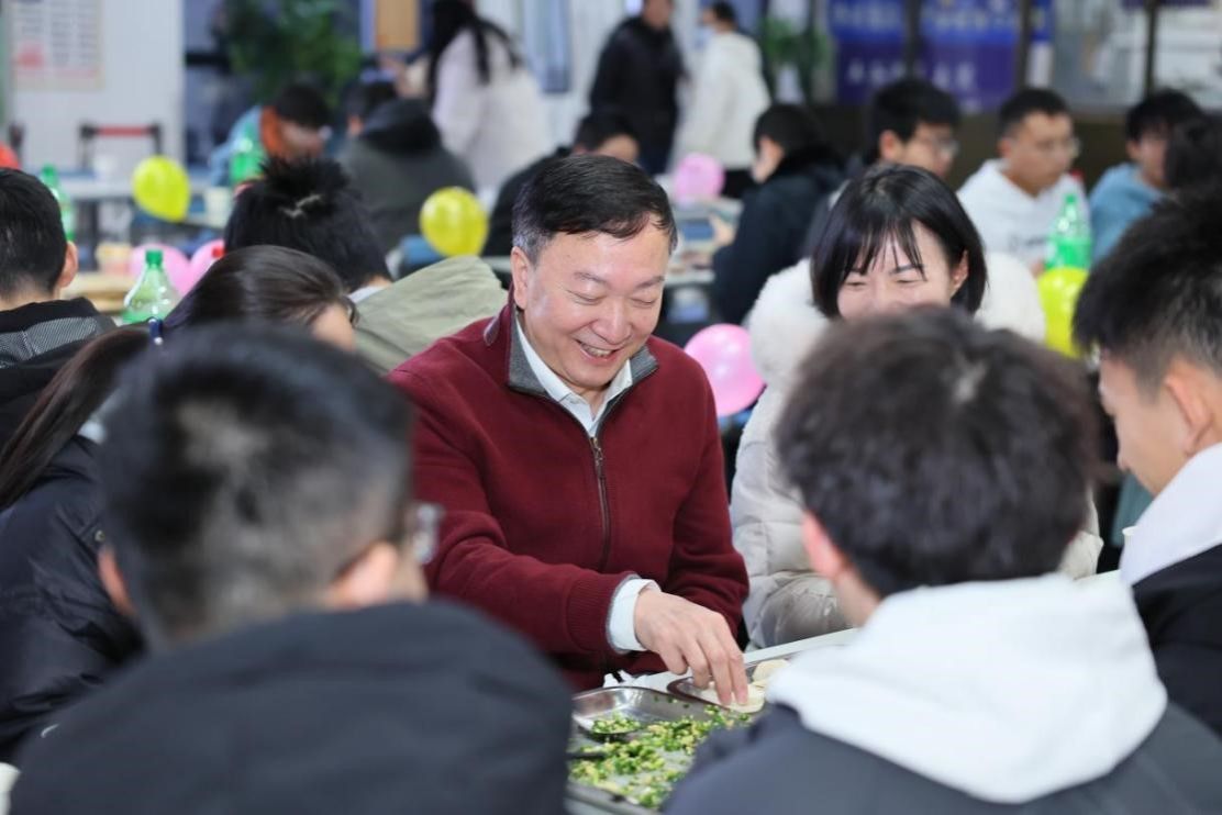 球王会体育官方网党委书记黄越、党委副书记韩冬、副院长宁昕及各年级辅导员也为同学们送上新年祝福,和同学们一边包饺子,一边交流,欢声笑语中,共同感受着新年的喜悦。