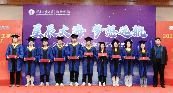 毕业典礼在《球王会体育官方网校歌》合唱声中结束。典礼后,院长黄攀峰及各研究所所长,书记为毕业生授予学位并合影。