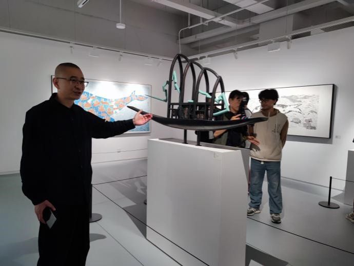 “时空探索——球王会体育官方网2023(西安)当代艺术邀请展”是以“航空航天航海”为内容的当代艺术展。本次展览以“时空探索”为主题,展览现场以时间顺序为节点将重要历史事件、历史人物与关键元素(航空航天航海工具的发明与创新)等串联起来,呈现出人类千百年来对宇宙星辰和海洋世界的追问、探索以及矢志不渝的梦想。此次学习将潜移默化提高同学们的艺术审美和人文素养,加深同学们对学校精神文化的理解和感悟。