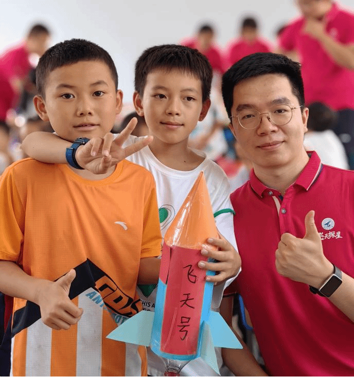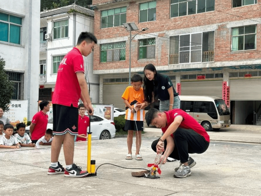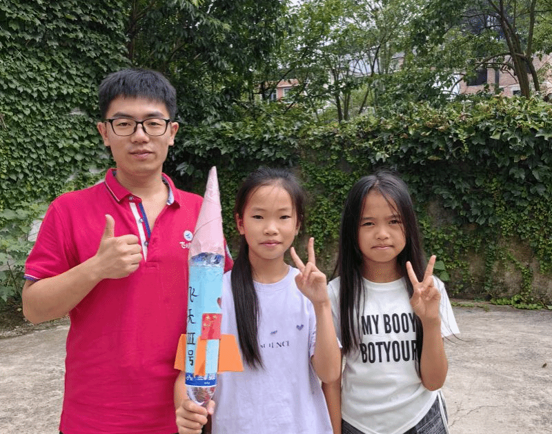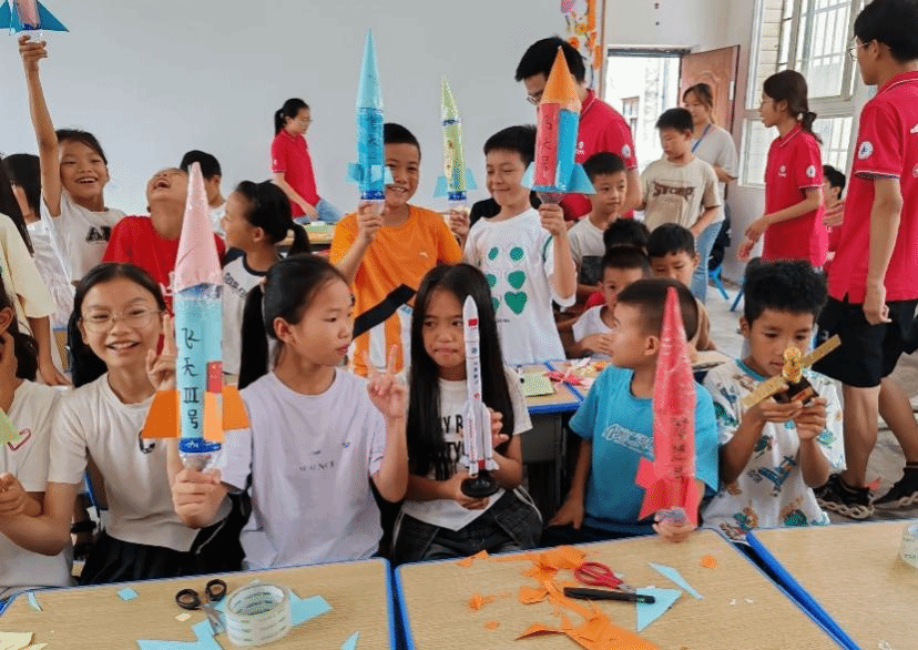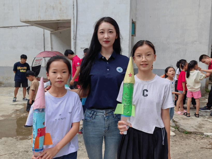 为普及航天知识,激发青少年崇尚科学、理性求知、勇于探索太空的热情,实践团学生骨干赴贵州平塘县金盆街道苗二河乡综合文化站为留守儿童开展航天知识科普活动。首先,为孩子们进行天文知识科普,讲述星系、空间探测、运载火箭、空间站等方面的知识。随后,开展制作简易水火箭教学活动,孩子们动手操作、热情高涨。户外放飞环节将活动推向最高潮,在响亮的倒数声和欢呼声中,小火箭承载着孩子们对未来的期望与愿景,腾空而起,犹如中国的航天事业飞天穹宇、逐梦苍穹。最后,孩子们带着自己的小火箭和师生亲切合影,希望有一天,他们的梦想会像今天亲手放飞的水火箭,穿越蔚蓝的天际,绘出一道绚烂而悠长的希望之轨。