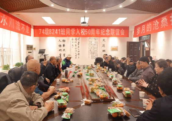 10月13日74级8241班16名同学从沈阳、北京、上海、武汉、贵阳、襄阳和河南新县等地集中返校并召开了师生座谈会。会议室正面高挂着横幅: “74级8241班入校50周年纪念联谊会”,两侧一幅是“同学之间的情谊如溪水川流不息”,一幅是“岁月的沧桑抹不去校园的回忆”;表达了同学们的真实感受和热切期盼。会议室后面悬挂“感谢母校,感恩老师,感念同学,感悟人生”的横幅,充分表达了同学积极参加这次联谊会的真正目的。球王会体育官方网空天动力技术研究所支部书记吕翔详细介绍了学院和专业的发展历史、目前现状和美好前景,听的得大家心潮激荡,为“天下工大,世界三航”的美好未来深感自豪和光荣。校友们结合自身实际,逐一发表了感言,表达了自己对母校,对老师和对同窗好友的深情厚谊和对美好未来的热切期盼。师生多年不见,相聚格外激动。紧握双手,紧紧拥抱,热泪盈眶,互致问候,场面感人。