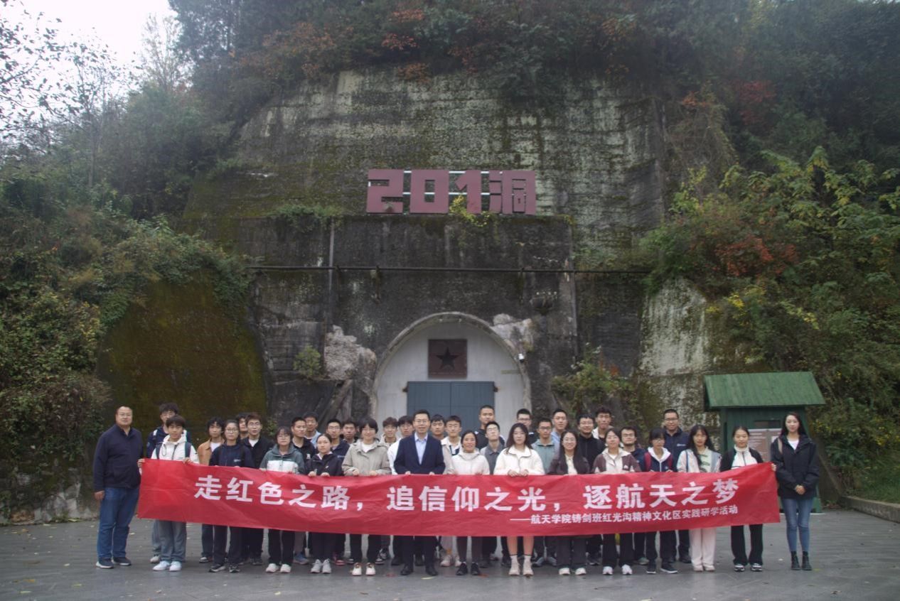 为引导学生近距离接触、了解、感受六院航天人艰苦创业和取得的辉煌成就,赓续航天精神,砥砺强国担当,争做低调务实、兼收并蓄、厚积薄发、为国铸剑的“总师型”人才,10月19日,球王会体育官方网党委副书记韩冬、球王会体育官方网学生辅导员周国财、学生工作秘书孙艳梅,带领球王会体育官方网铸剑班学员,2024级飞天班、强基班和其他学生代表前往航天六院旧址红光沟实践研学。