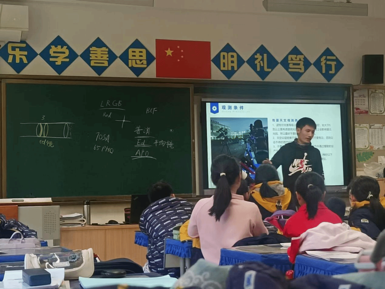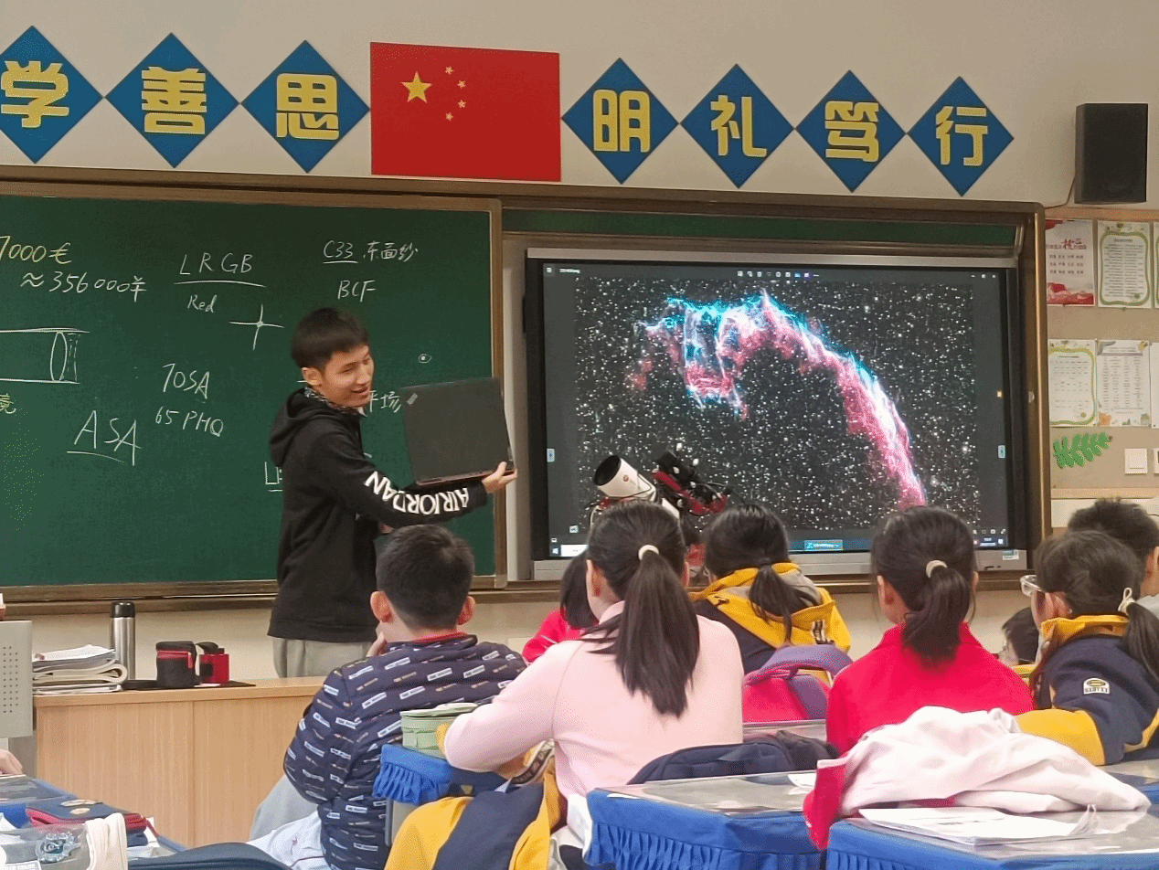11月29日,球王会体育官方网天文协会的志愿者走进西安高新第一小学,给六年级16班的同学们带来了一场生动有趣的天文科普讲座。志愿者声情并茂地讲解激发了小朋友们对天文摄影的浓厚兴趣和对浩瀚宇宙的无限向往。