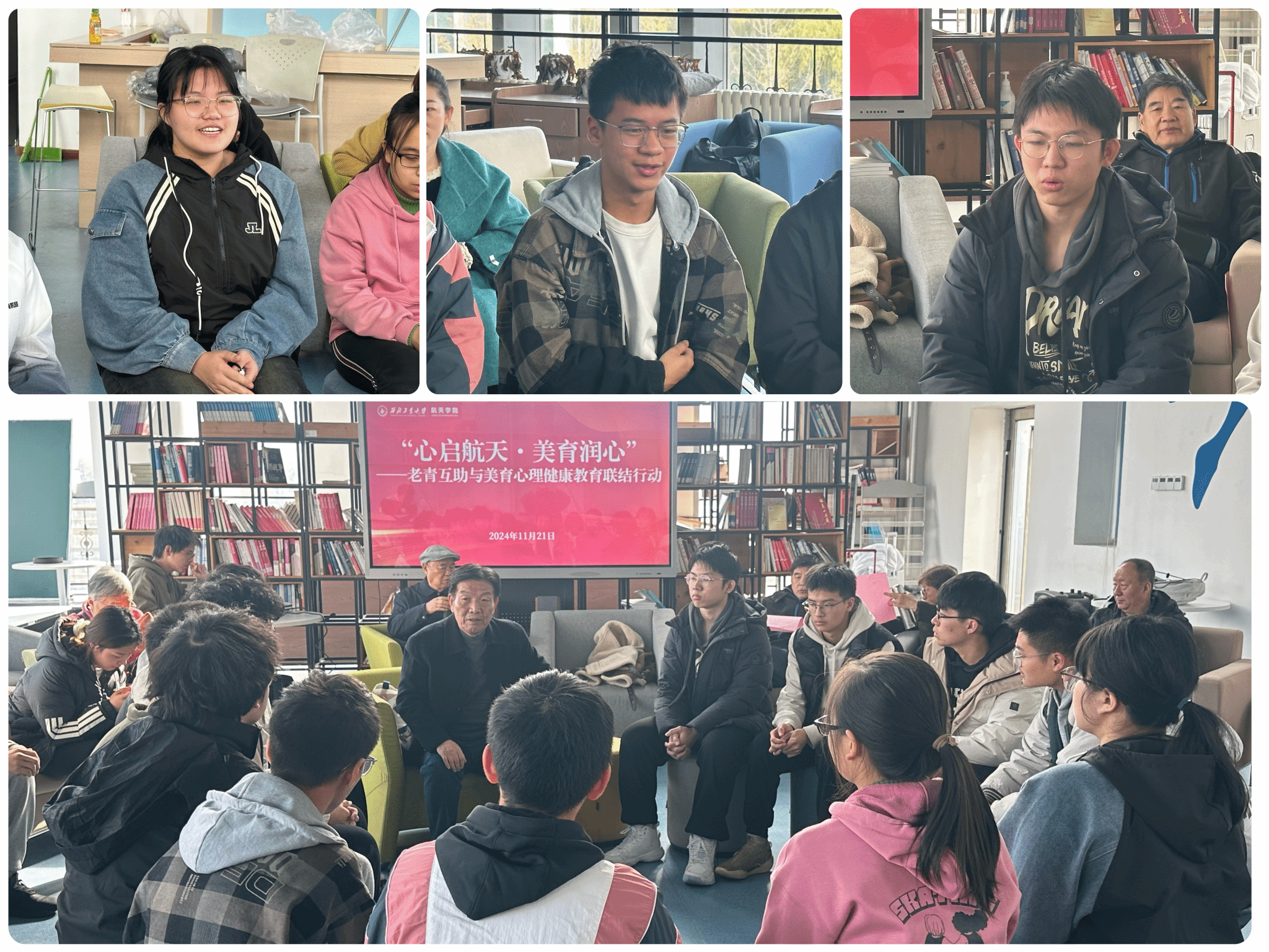 11月21日,由校关工委、球王会体育官方网、校医院联合主办的“心启航天·美育润心”——老青互助与美育心理健康教育联结行动在西工大长安校区举行。校关工委“银发育心员”、球王会体育官方网师生代表参加了活动。校关工委委员王友明主持活动。