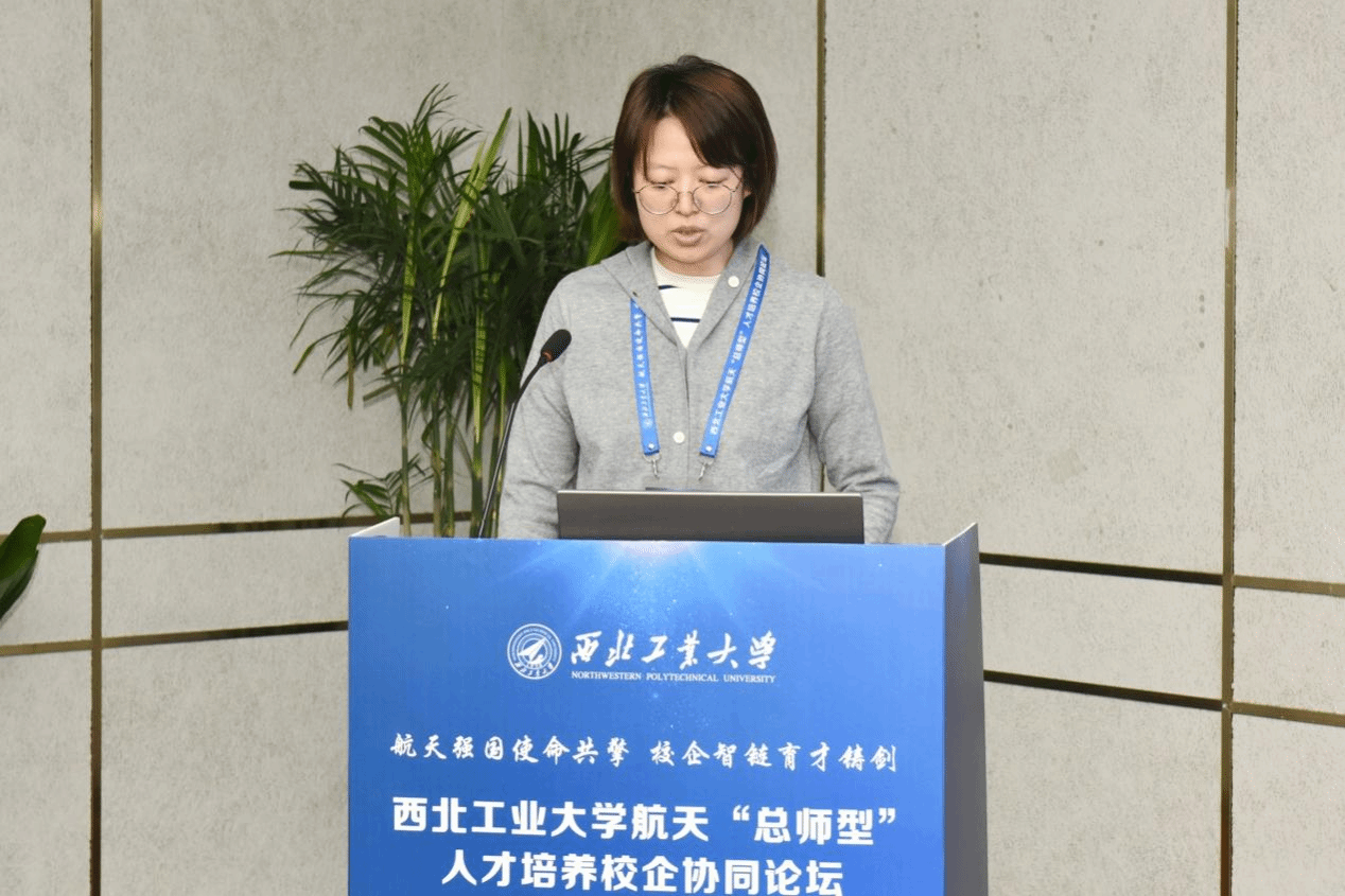 中国航天科技集团八院八部人力资源处副处长施鸿雁作了题为《携手未来 共育英才》的报告,介绍八院八部情况。