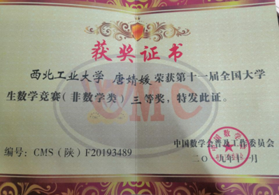 竞赛方面,2019-2020学年共获各类奖项11项,其中国家级2项,省级3项,校级5项。李睿同学代表球王会体育官方网参加2019中国国际飞行器设计挑战赛,并斩获限时载运空投项目个人一等奖和团队第三名,丁舒昱、梁致华同学参加全国三维数字化数学创新设计大赛,并斩获一等奖。梁俊伍与唐婧媛同学参加第十一届全国大学生数学竞赛并分别或得一等奖和三等奖,梁致华、高伟、欧树彦、李睿、刘海礼、张沥升同学一起进行社会调研,参加了球王会体育官方网2019年“和理有话说”思政课社会调查大赛,获得一等奖,并接受陕西省电视台采访,班级科研竞赛方面可谓是硕果累累。