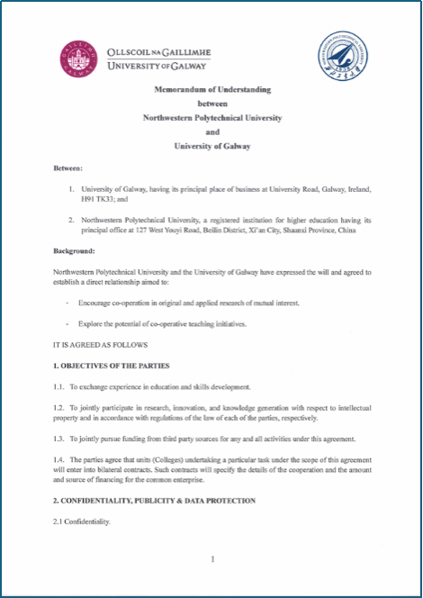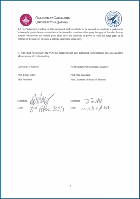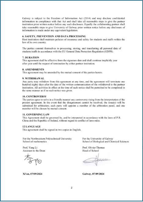 爱尔兰高威大学与球王会体育官方网有着良好的合作基础,双方于2023年签署战略合作协议,并开展高层领导互访,师生交流,暑期游学,合作科研等项目。以下为两校战略合作协议首页与末页。