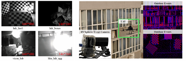 在公开数据集和自建数据(如图3所示)上的实验结果表明,该文章所提方法和系统相比于现存方法具有优越性,特别是在高速、高机动、高动态范围及低光照场景中表现优异(如图4)。