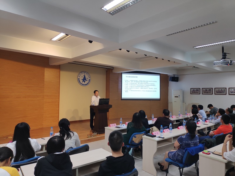 会议伊始,王莉老师介绍了分享会主讲人夏博隆老师以及航天七院的各位领导嘉宾。在同学们热烈的掌声中,夏博隆以“逐梦航天,青春无悔”为主题为同学们作报告。他介绍了航天七院(四川航天技术研究院)对中国航天事业和航天人才培养的卓越贡献,随后从三线建设、优秀航天人的故事、我国航天工业的发展历程等方面向同学们展示了航天七院的发展历史,并向有意投身航天事业的学生们介绍了七院下属各研究所的主要项目、产品、人才发展情况和工作环境等。