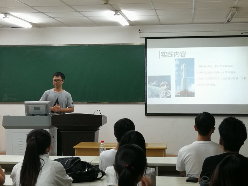 张立聪和张明昊同学分别就“访学内容”以及“访学手续和开销”进行见闻分享,采用新颖独到的“表情包”模式为大家生动的展示了暑假在英国的见闻及感受,得到大家一致好评。刘双喜同学分享了党在嘉兴的发展史,以及在陈士橹院士母校浙江金华第一中学和家乡东阳市上东陈村调研学习的经历。邵楠同学主要介绍了各航天院所,专业学科设立、人才需求、福利待遇、以及专业能力需求。分享会现场气氛热烈,同学们纷纷表示收获良多。
