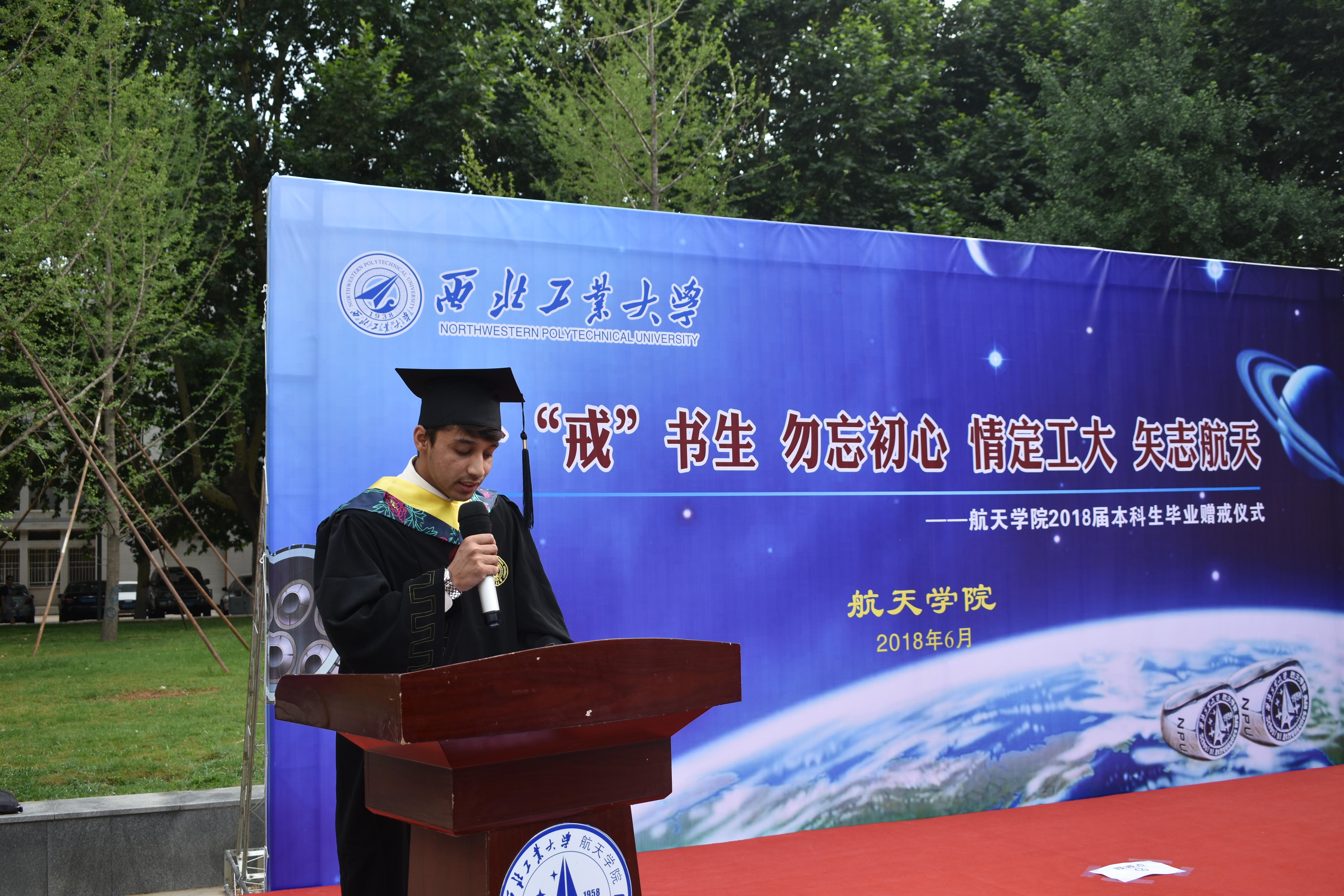 相信未来,同学们一定会记着这几年在球王会体育官方网的学习与生活,更不会忘记学校、学院教给他们的点点滴滴,“一‘戒’书生、勿忘初心,情定工大、矢志航天”必将铭记于每一位同学的心中,他们的青春年华必在为国家、为人民的奉献中换发出绚丽光彩。