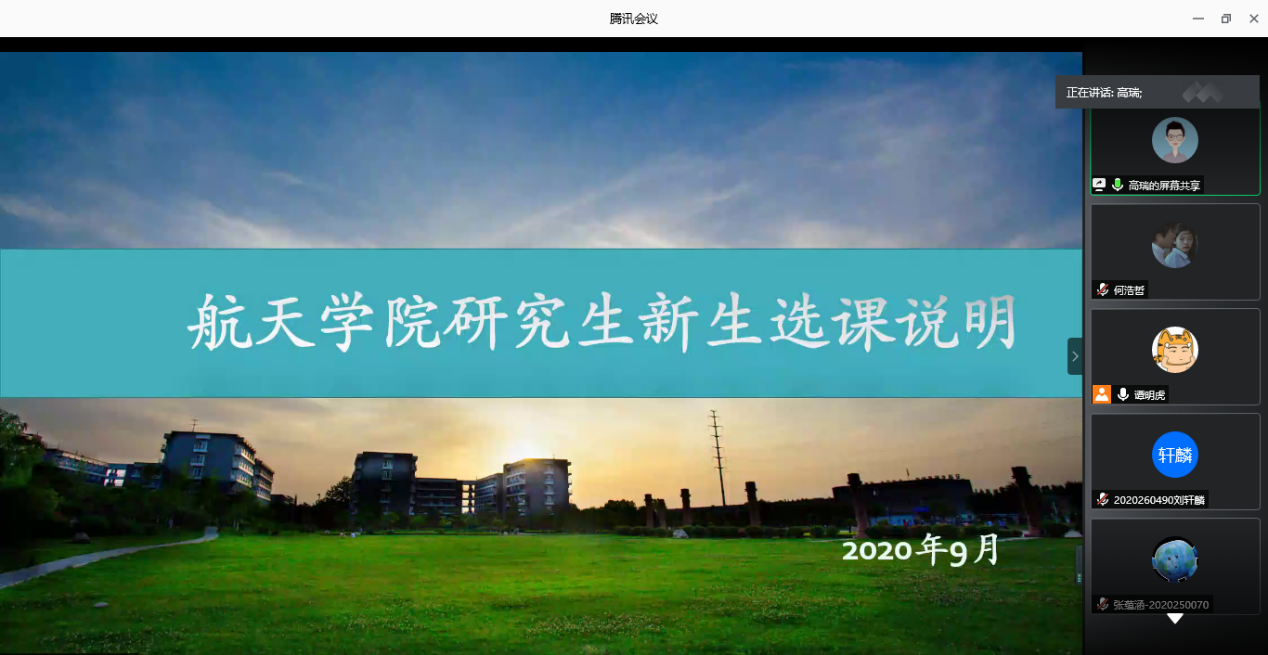 随后,研究生辅导员谭明虎老师为同学们详细介绍了学院办事指南,并分享了研究生生活和注意事项,希望同学们遇到问题及时与学院沟通。研究生教学主管高瑞老师为同学们介绍了培养计划制定和选课流程,并认真回答了同学们提出的相关问题。研究生会主席徐安帮为同学们介绍了学院研究生会的基本情况,展示了航天学子们积极向上的精神风貌与丰富多彩的课余生活,鼓励同学们在努力学习、认真科研的同时,积极加入研究生会,参与研究生会组织的各项活动,共同构建和谐校园文化环境。