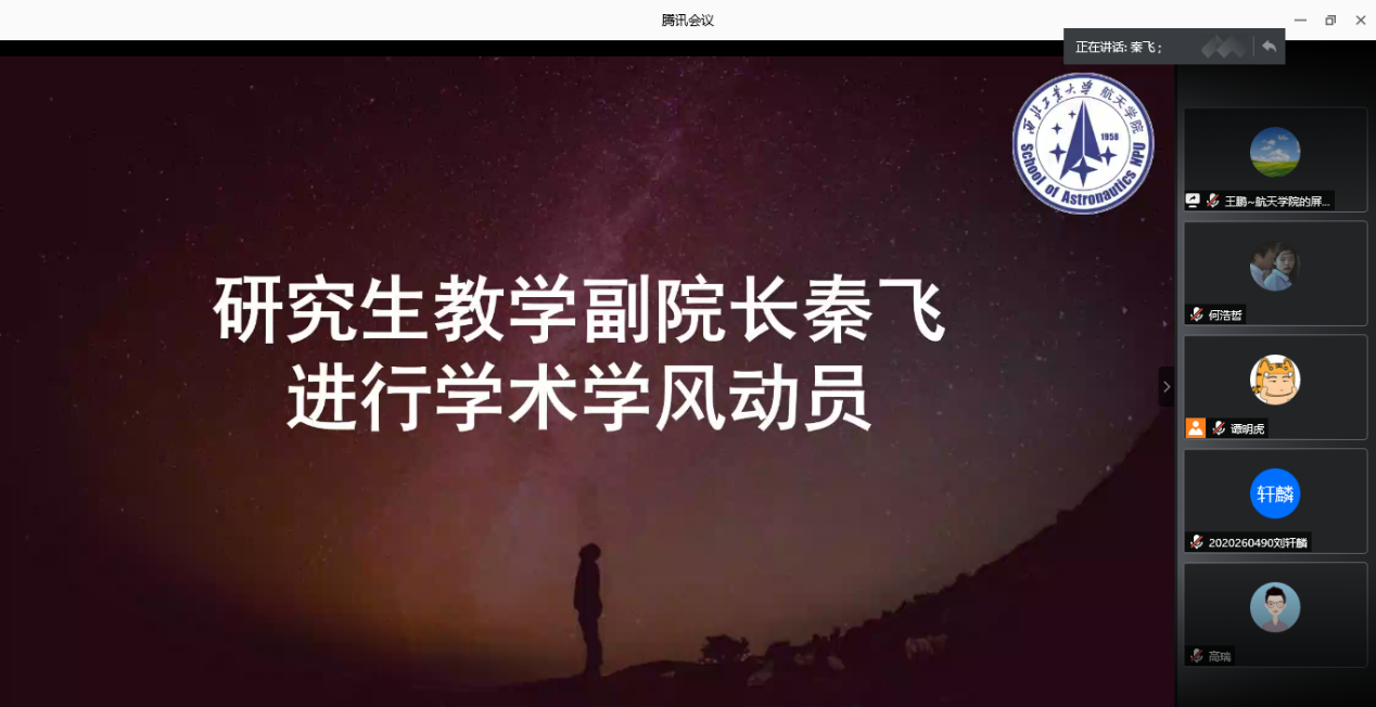 9月1日下午,球王会体育官方网举行2020级研究生新生见面会。由于疫情防控要求,今年新生见面会改为线上进行。见面会上,学院领导与负责老师同2020级硕博新生分享航天精神,探讨交流如何在球王会体育官方网进行科研学习。见面会由院长助理王鹏老师主持。